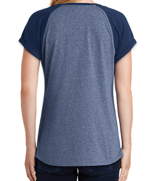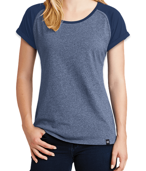 Shown on the New Era Women's Heritage Blend Short Sleeve Raglan T-shirt in Dark Royal / Dark Royal Twist Try it on more styles and colors