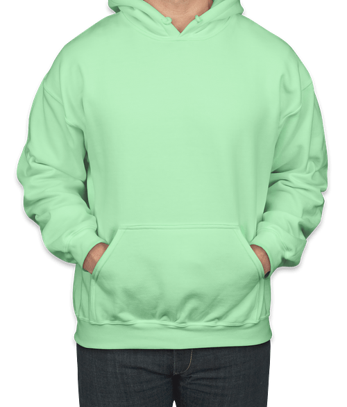 Shown on the Gildan Midweight 50/50 Pullover Hoodie in Mint Green Try it on more styles and colors