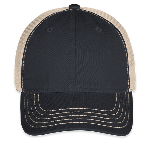Shown on the District Super Soft Trucker Hat in New Navy / Stone