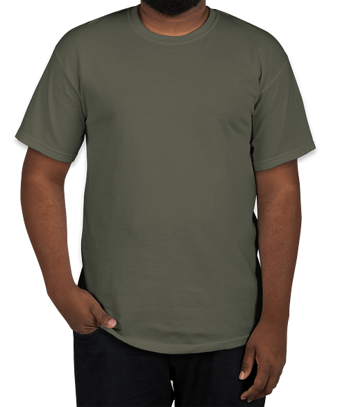 Shown on the Gildan Ultra Cotton T-shirt in Military Green Try it on more styles and colors