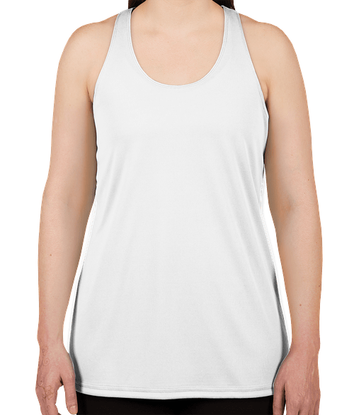 Shown on the Badger Women's Performance Racerback Tank in White Try it on more styles and colors