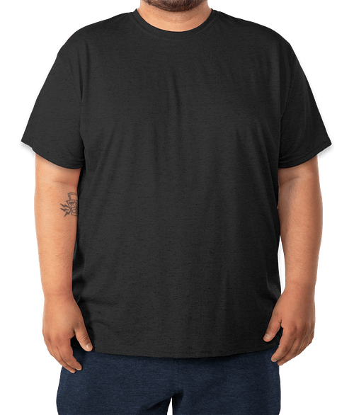Shown on the Hanes Perfect‑T Recycled Tri‑Blend T‑shirt in Solid Black Triblend See it on both colors
