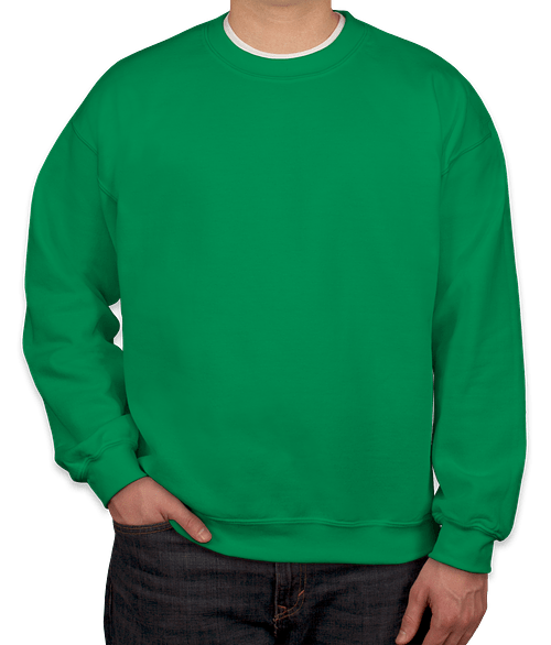 Shown on the Gildan Midweight 50/50 Crewneck Sweatshirt in Irish Green Try it on more styles and colors