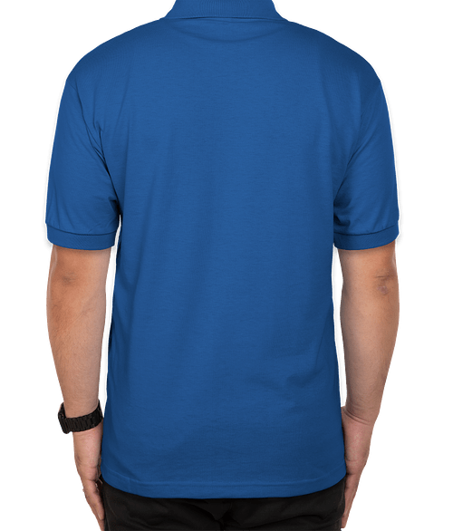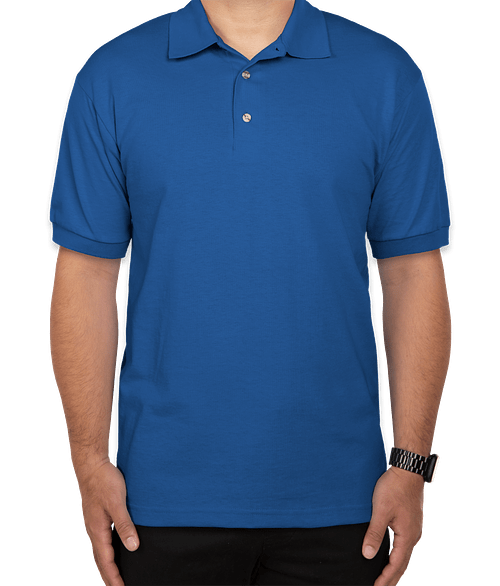 Shown on the Gildan DryBlend 50/50 Jersey Polo in Royal Try it on more styles and colors