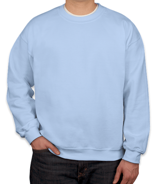 Shown on the Gildan Midweight 50/50 Crewneck Sweatshirt in Light Blue Try it on more styles and colors