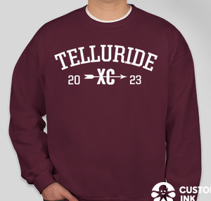 Shown on the Gildan Midweight 50/50 Crewneck Sweatshirt in Maroon Try it on more styles and colors