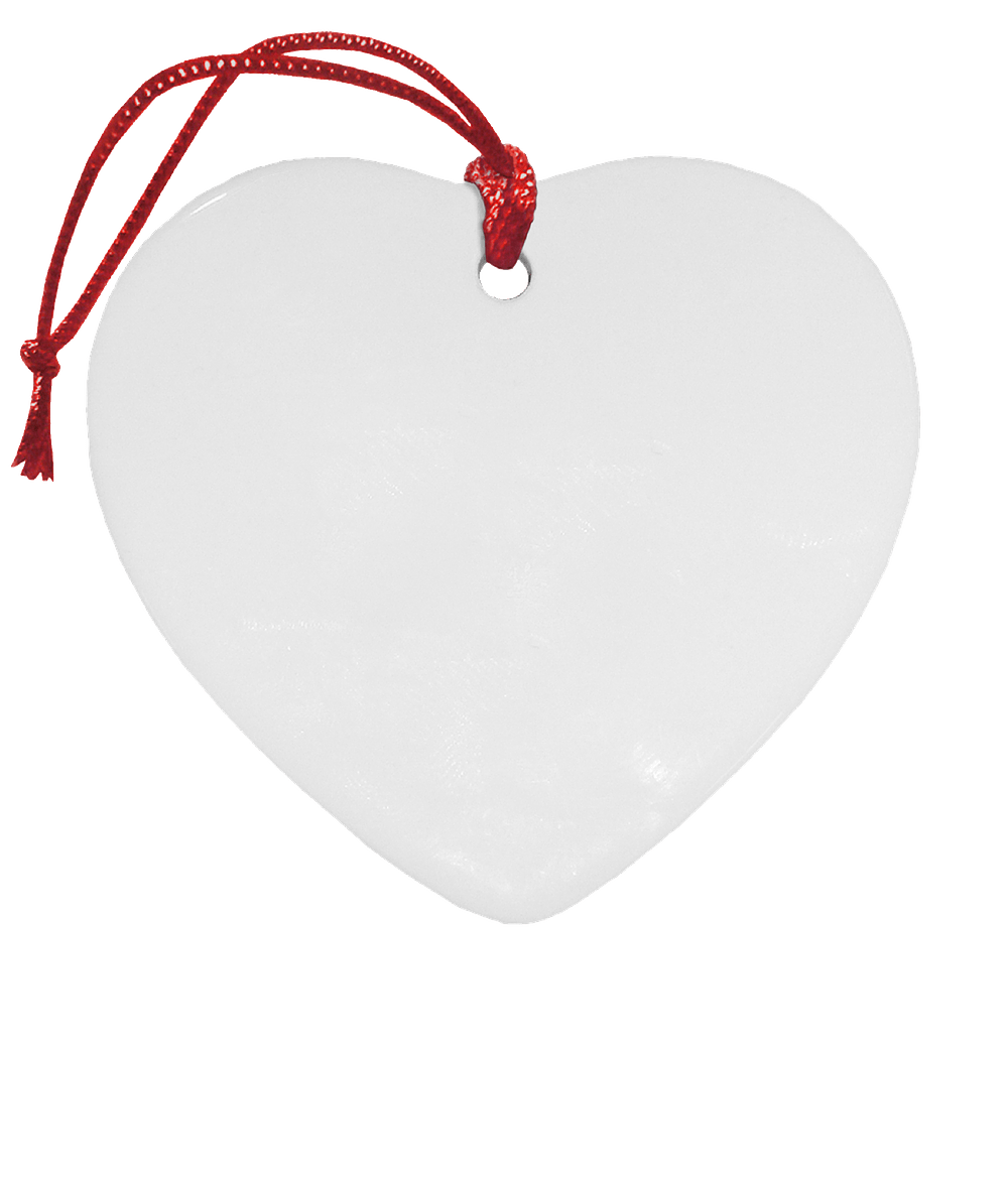 Full Color Heart Ceramic Ornament, Unisex - White with Red Cord