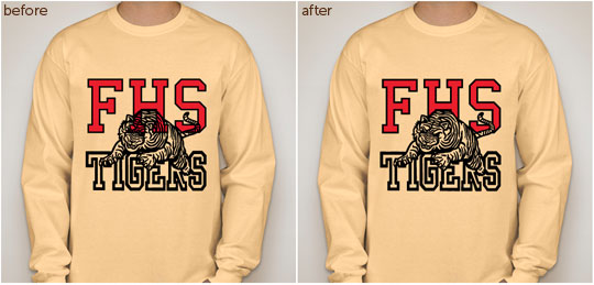 We'll always add a thin transparent outline to your overlapping design elements when appropriate in order to distinguish the layers of your design. If you have several overlapping elements, we'll contact you to confirm exactly how they should be layered.