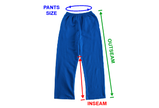 OUTSEAM: Measure along the outer edge of the garment. Start at the top of the waistband and end at the bottom hem.