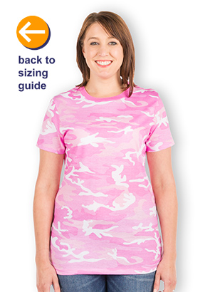 District Made Women's Camo T-shirt - Sizing Line-UpSM - Medium
