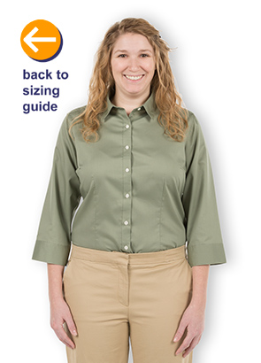 Van Heusen Women's 3/4 Sleeve Baby Twill Dress Shirt - Sizing Line-UpSM - Large