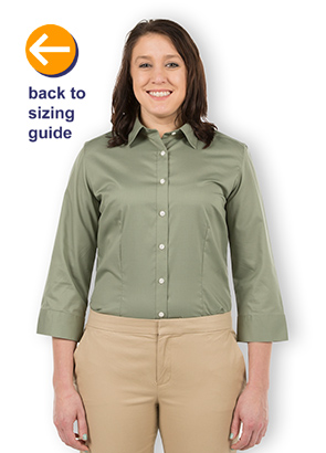 Van Heusen Women's 3/4 Sleeve Baby Twill Dress Shirt - Sizing Line-UpSM - Medium