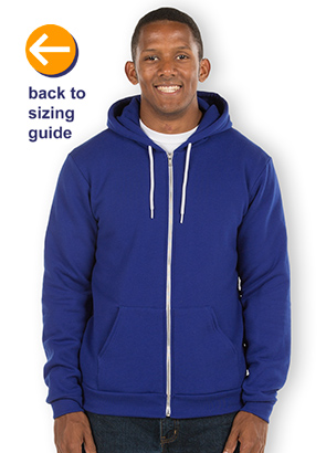 American Apparel Flex Fleece Zip Hoodie - Sizing Line-UpSM - Standard Sizes