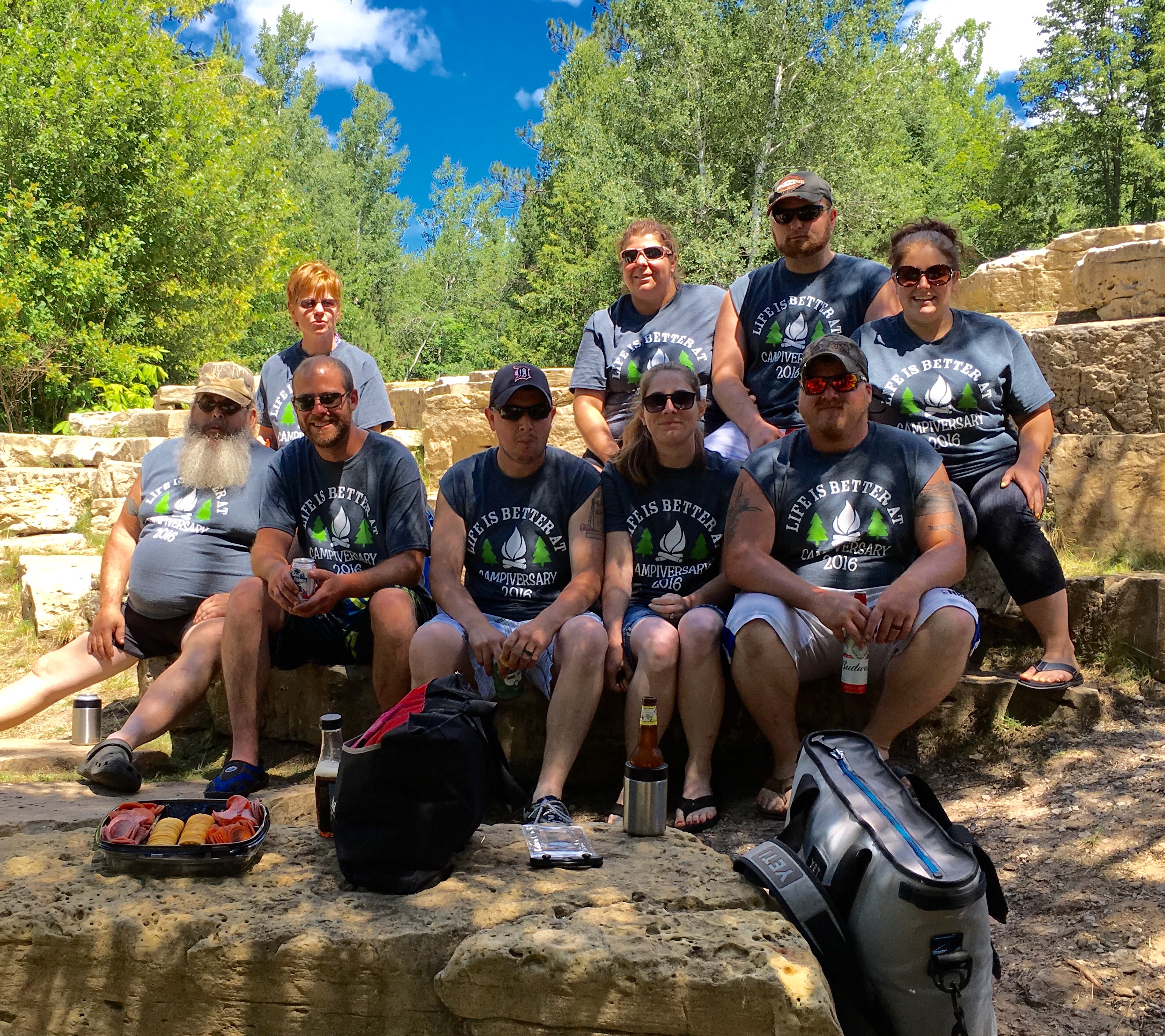"My friends and I are all starting an annual thing where we go campng to celebrate our Wedding Anniversary's. This year we went to Roger City-MI and went to a waterfall and had some one take our picture for us. I get shirts from Customink at least every other year from our family Christmas get together. Any time we have any kind of party and want shirts , this is where we go. Everything is always great! We always get them on time and they help you every step of the way. Love this site and will continue to use them for all my printed needs :) "