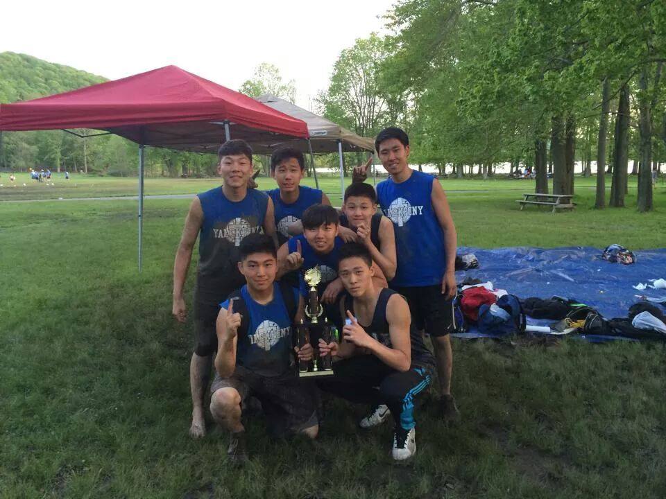 "this is the Yale Youth Group Boy's Volleyball Team (no affiliation with the university) from Hicksville, NY. This past Saturday, (5/17), the boys weathered extremely muddy conditions (as you can see from the jerseys) to take home the first place trophy.
