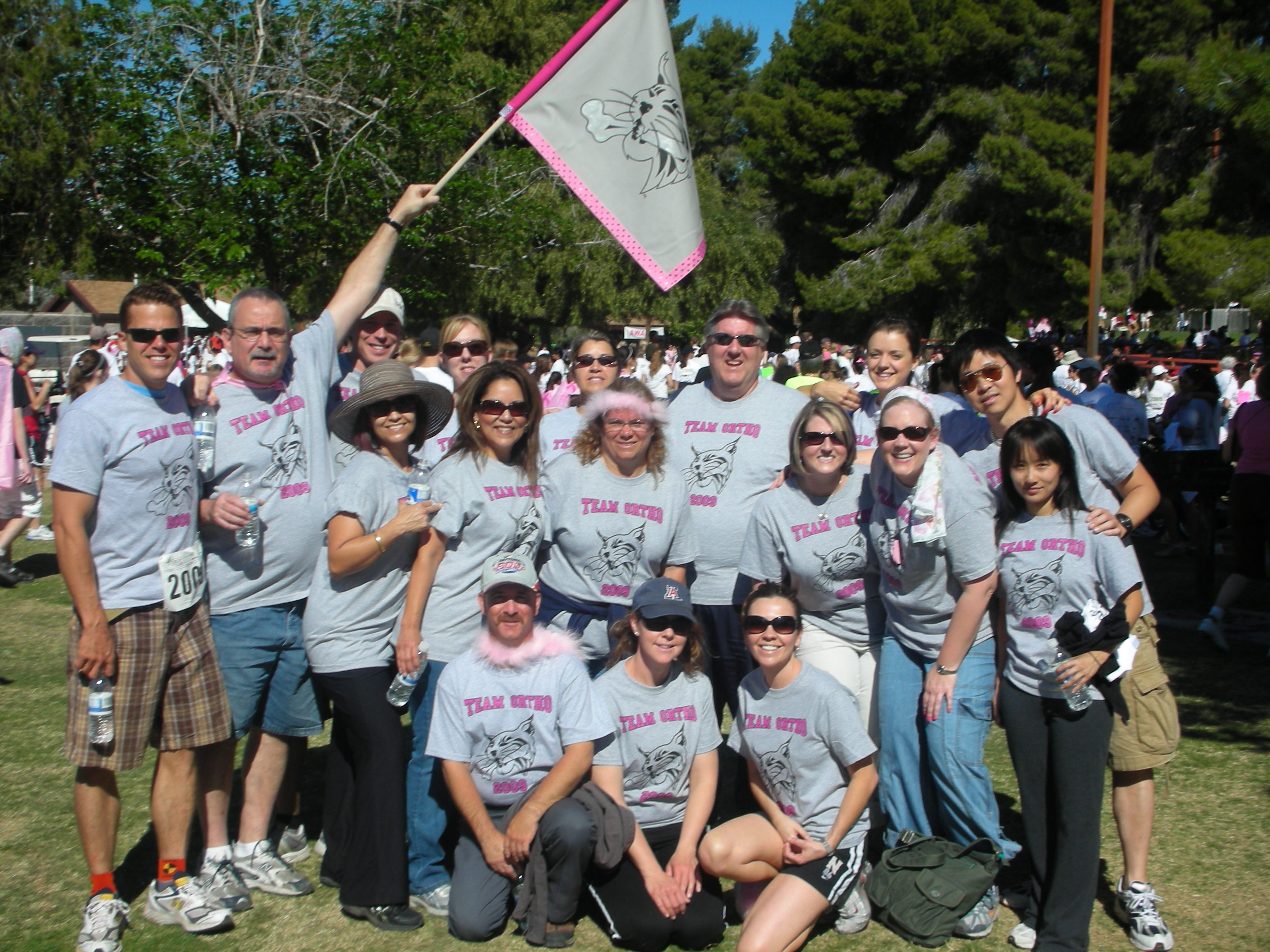 "This is Team Ortho: a group of folks that work in the orthopaedic surgery department at University of Arizona/UMC in Tucson Arizona. Every year we form a team for the Susan G. Komen Race for the Cure. The event was a big success with over 14,000 participants this year. Our team shirts were a HUGE success. Thanks Custom Ink for the great shirts and the donation for our cause."