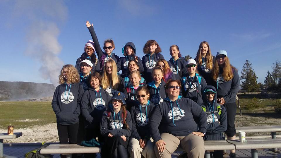 "19 amazing Girl Scouts from troop 607 out of Colorado Springs were determined to go to Yellowstone this year. In order to ensure that all girls were able to afford the trip, they sold over 7500 packages of Girl Scout cookies! This picture was taken in front of Old Faithful."