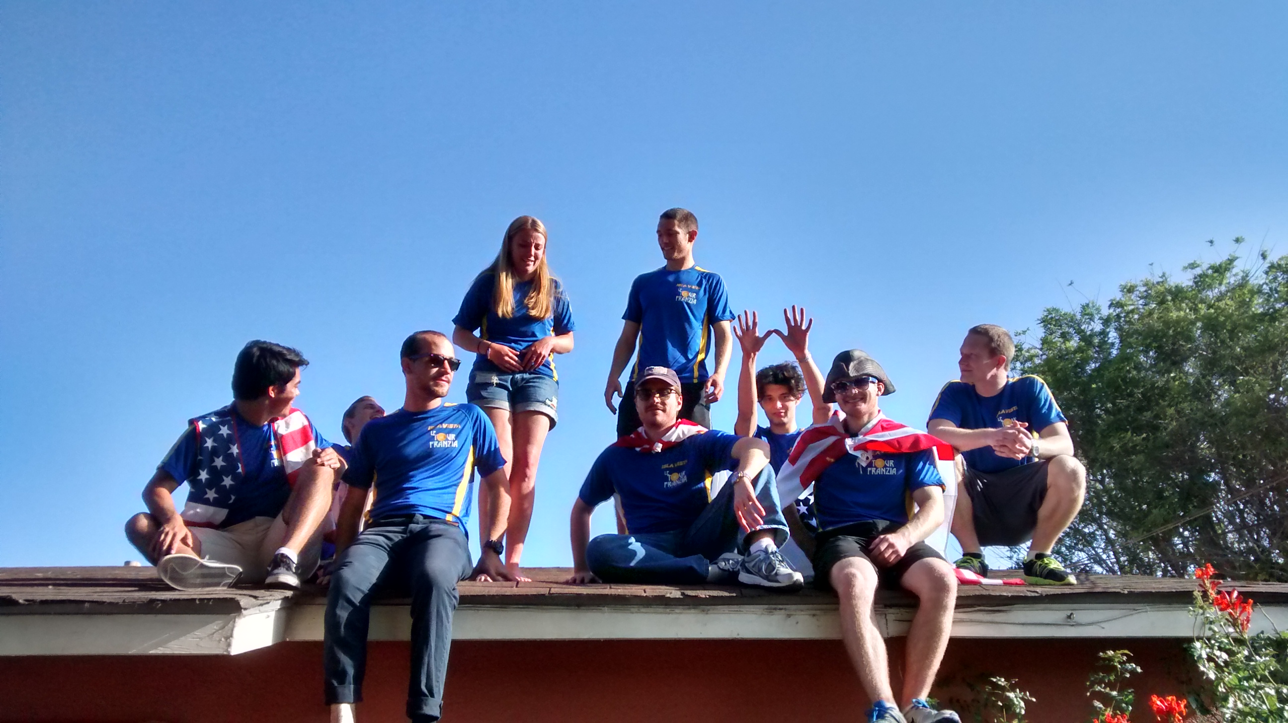 "We wanted to celebrate the coming of spring with a day with friends out in the warm sun. We hosted our event in the town of Isla Vista, well known as a beach town, and all got matching shirts to liven up the event. We had four of our members perform in a live Jazz band, and got everyone to dance to their funky music. This picture was taken shortly after the band's performance, on the roof of a friend's house."