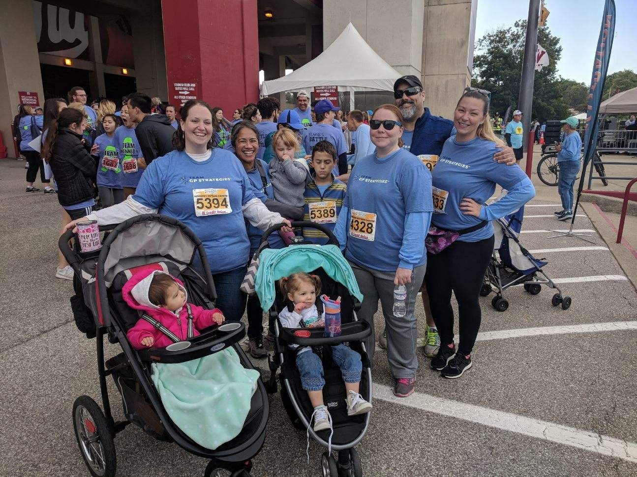 "Some members of Team GP Strategies, warming up before the Hoosiers Outrun Cancer 5k"