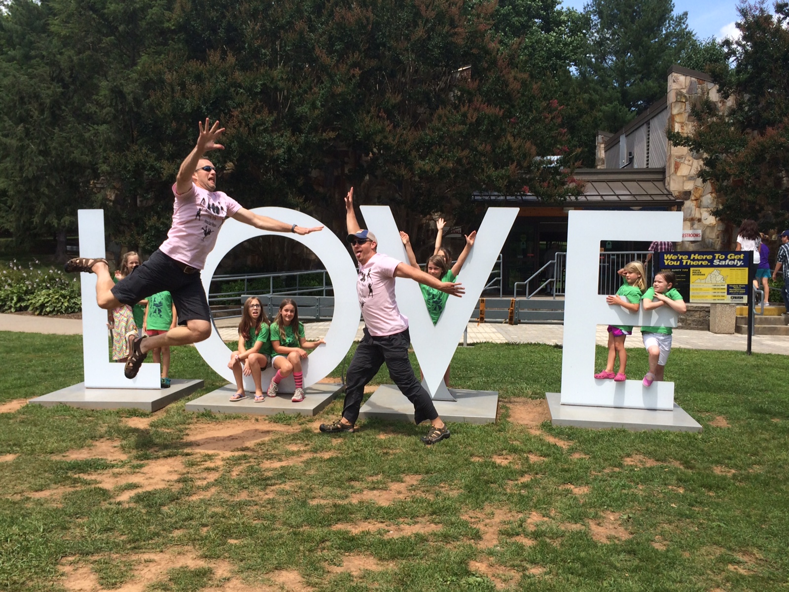 "We are seven families that go on a camping adventure trip every July 4th, and a t-shirt is required for the event. CustomInk printed them last year (VCT Adventure) and they turned out great so we returned this year with our ACE Adventure shirts. On both trips we had people asking us where we got our shirts because they wanted to buy them. In this photo, taken en route to our destination, some of our kids posed around Virginia's LOVE signage, with of the dads photobombing while wearing a couple of CustomInk shirts that accidentally were included in our order (we got a kick out of the fact that they were for a lady's 40th birthday bash in vegas--customer service told us not to send them back so we made the best of it). i'll upload a group photo with just the ACE Adventure shirts, as well as a group photo from last year's VCT Adventure. We love CustomInk, which is why we keep coming back. the customer service is beyond excellent, the quality is great (everyone wears the shirts year-round), and the price is right. Thank you!"