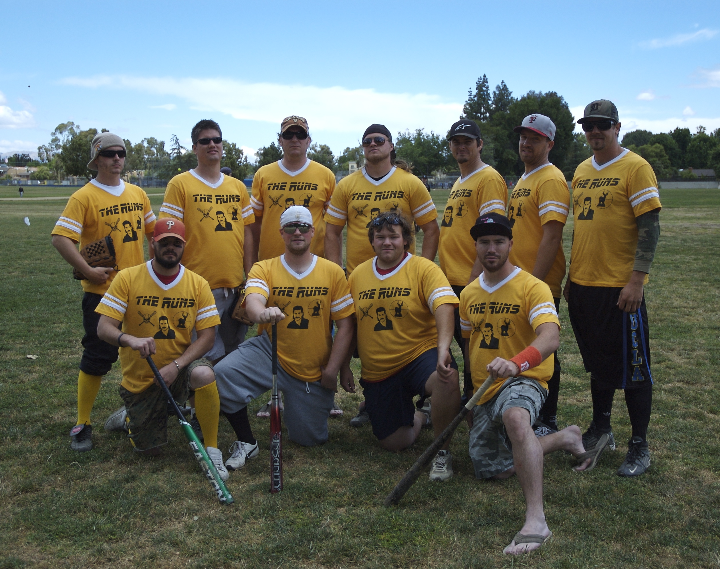 "After we recieved our Custom Ink jerseys, our woes on the field quickly became battle cries of victory as we defeated our hated (good buddy) league rivals! We then proceeded to defeat the leagues best team, and this was a post victory picture. Now I'm not sayin Custom Ink jerseys give you super strength, but hey, They sure helped us "Grendal It!""
