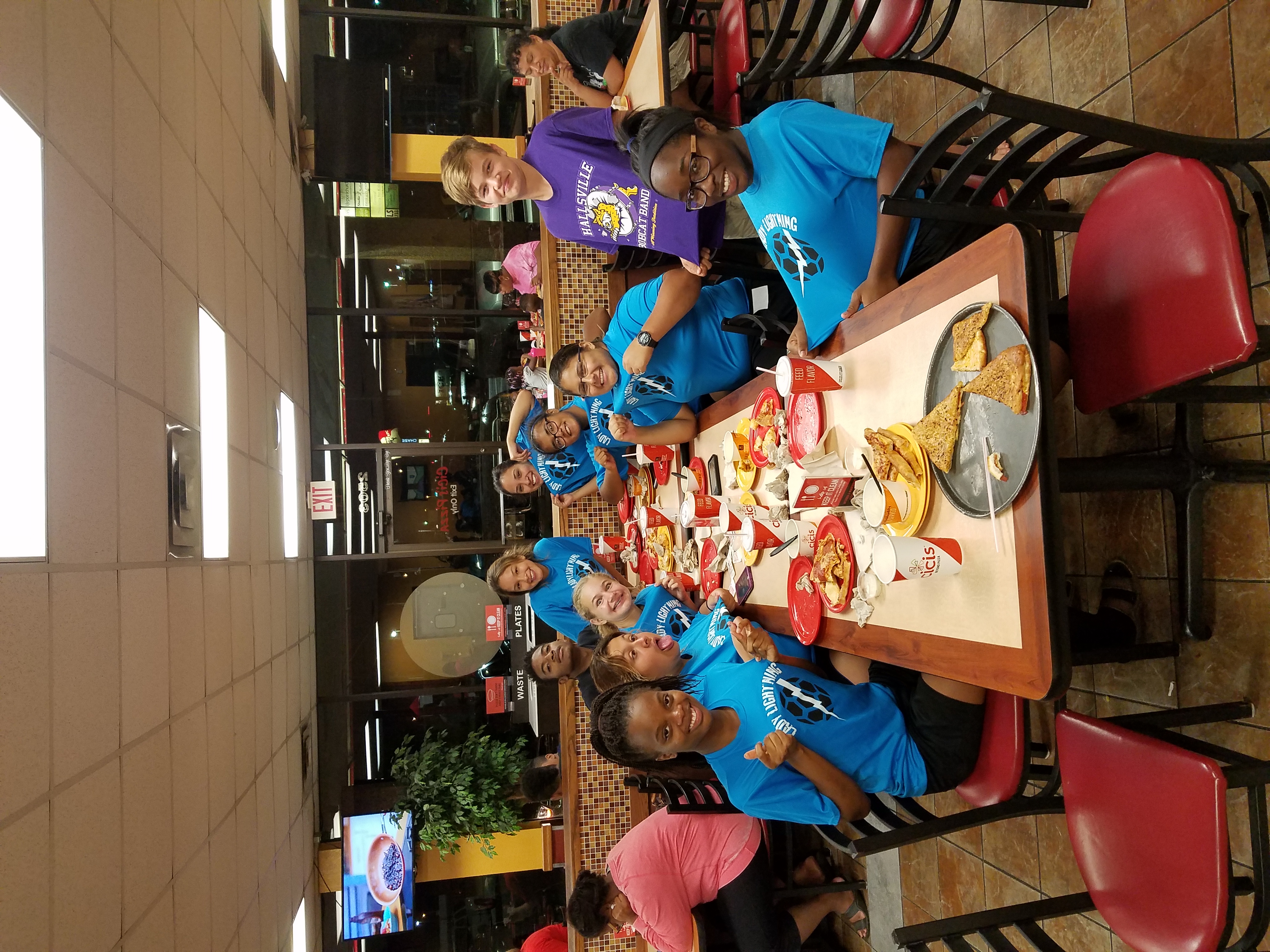 "Eating Pizza after our big win of Lady Lightning 8 vs Lady Pumas 0!!! Enjoying our awesome jerseys from CustomInk!! We are are hoping to go all the way to Tournament Of Champions in Dallas Texas with our our great look!!!"