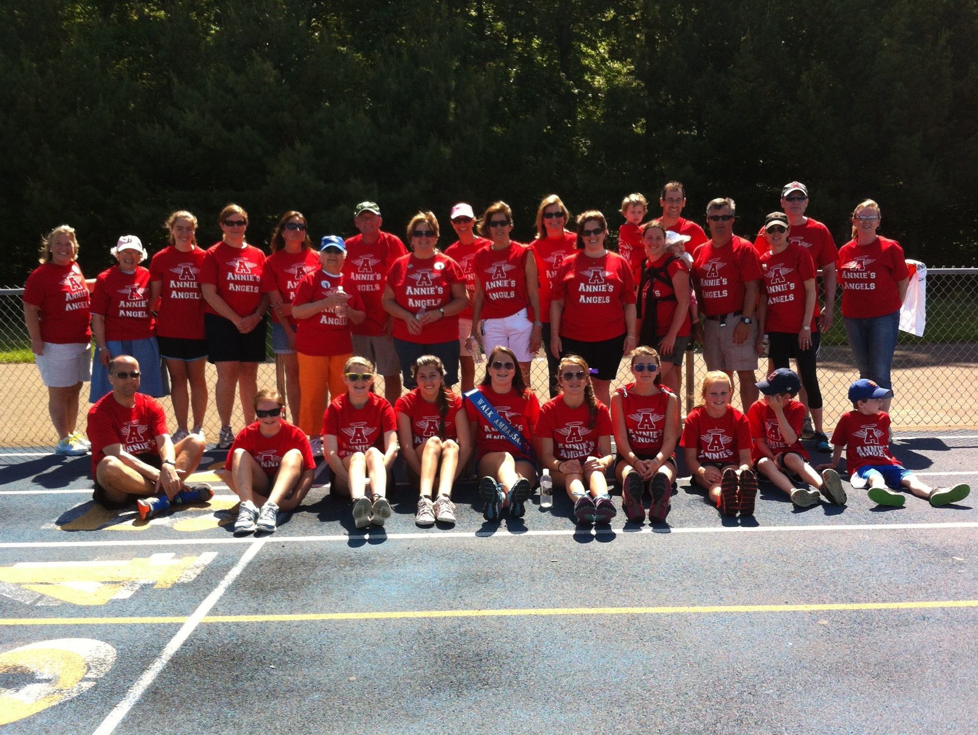 " Annie was diagnosed with JRA at the age of 5 yrs. It has been a long hard (painful ) road. Through the years Annie became involved in the Arthritis Foundation - initially in advocacy and then in the Arthritis Walks. This year she was appointed the Youth Ambassador of the walk For more info you can go to the So Ct Arthritis Walk 2013 website and read Annie's story. The photo is of the 2013 Annie's Angels Team sporting out custom made Customink shirts "