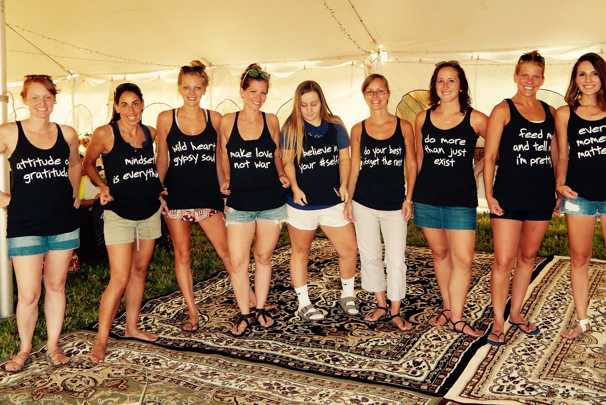 "For all of my bridesmaids, I gave four personalized gifts - the gift of Peace, the gift of Love, the gift of Happiness, and the gift of Health. CustomInk helped me to give the gift of HAPPINESS! Here you see each of my bridesmaids wearing their personalized tank tops at the rehearsal dinner - each tank has a custom quote on it which reflects the personality and perspective of each person. Now, thanks to CustomInk, each time my girls put on their custom tanks, they will always be able to reflect on our friendship, as they remember this special day, and it will bring them happiness and smiles for years to come!!"