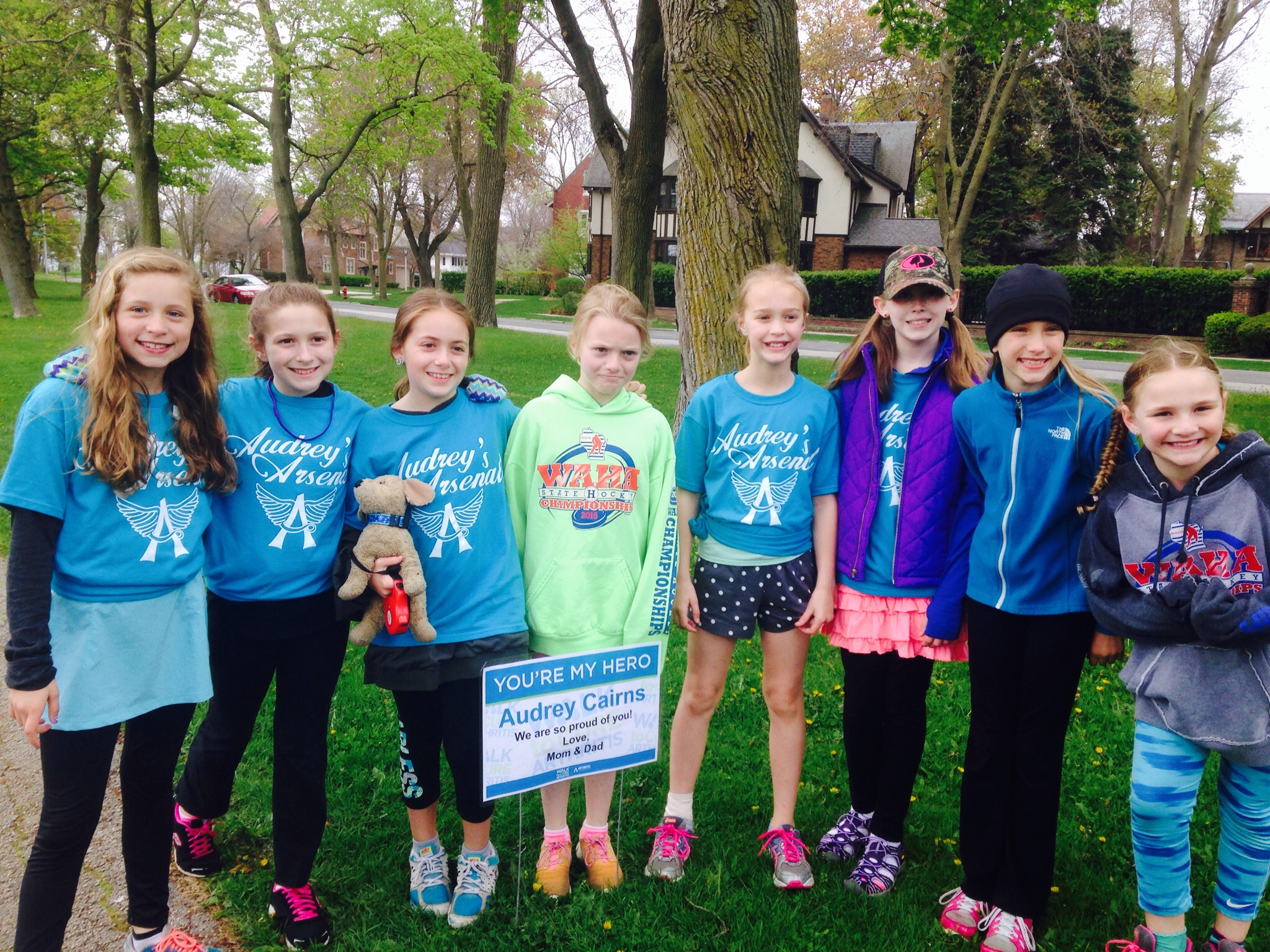 "This is Audrey and her school friends. Audrey has battled JRA for nearly 8 years. Her friends were proud to don their CustomInk shirts!"