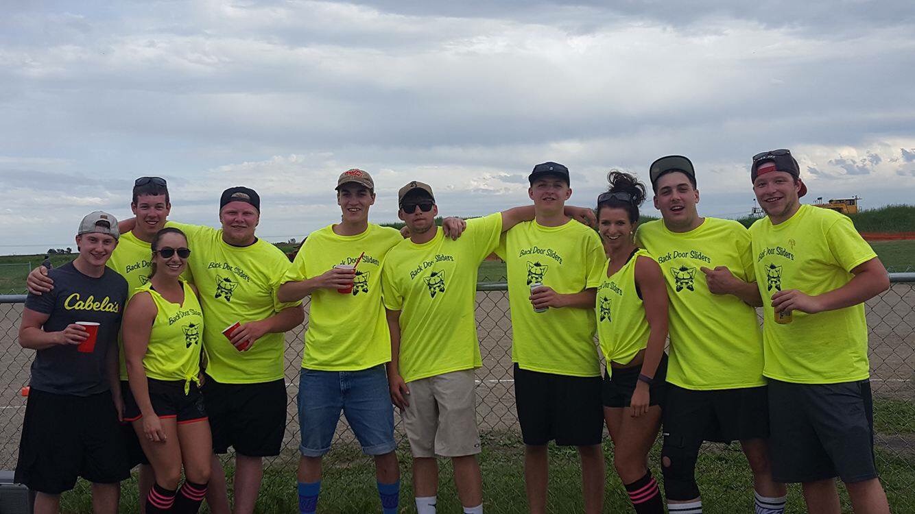 "This photograph was taken for Pense days slow pitch tournament. This was our team the Backdoor sliders. The event was June 18th, to celebrate another birthday of the town. My experience with CustomInk has been 10/10. Everything about my experience has been great. I would recommend this service to all people. Very good and job well done"