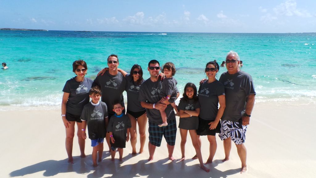 "We had a fabulous experience with Custom Ink. They were so thorough and helpful in the everything from helping with the design process, suggesting changes and choosing the right shirts for everyone. We surprised our dad with the shirts on Father's Day because he had surprised us with a family trip to the Bahamas. This picture was taken on the beach at the Atlantis on Paradise Island. It is our entire family."