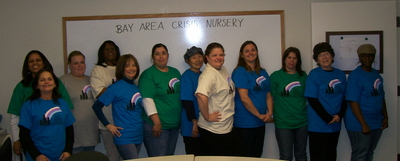"This picture was taken at our staff meeting. We purchased 150 t-shirts. Staff were given "tickets" to pick out two shirts for free (in their Christmas stocking). We then have the t-shirts available for purchase by over 100 volunteers and other people who have expressed an interest. This is the first year we've offered shirts with our logo in color. We were able to do that because the staff at CustomInk took our graphic, sharpened it, and made us proud. We couldn't have done it without them. Everyone loves the four colors that chosen and really appreciate the quality of the shirts. We work with children from birth - age 11 and it is important that not only are the colors bright but easy to take care of. Thanks to all