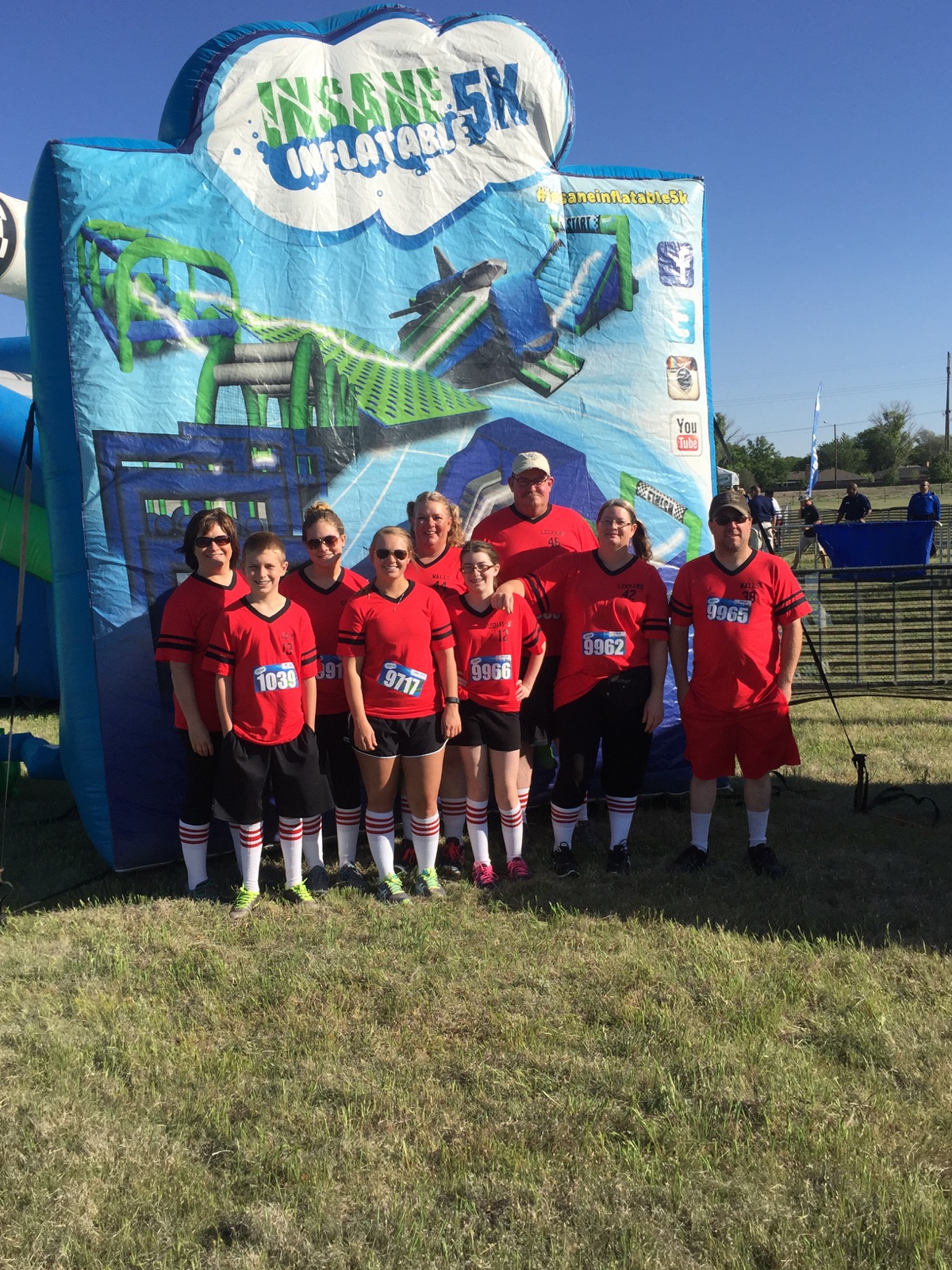 "It all started with one person saying "that looks like fun" and a motivation for us to walk more. This photo was taken just before we "ran" ( most of us walked) the Insane Inflatable 5k in Amarillo, TX on May 7th if 2016. Included in the photo are my family, a Co worker and her family and a friend. The event turned out great and we all had a blast."
