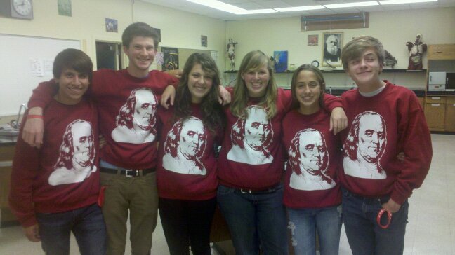 "This is the group of individuals who came up with the original idea to make the Ben Franklin sweatshirt into our Student Government sweatshirt. Our sweatshirts were well received and we might be placing another order for them!"