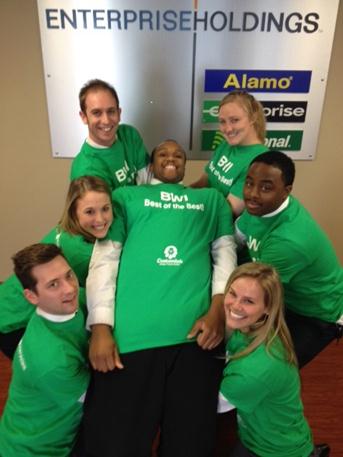 "At the BWI Enterprise rental branch we have a Best of the Best program in which performing employees get asked to work 4 months at the BWI airport office to learn that side of the business. Prior to starting at the airport they recieve a "Welcome to the Airport" package that includes their own "Best of the Best" customink tshirt. The Airport Employees love their tshirts and think of creative ways to take their group photo! Customink is always so exceptional with providing us the customer service that our company prides itself on! The quality of the shirts and the service is what keeps us coming back time and time again! THANKS CUSTOMINK!"