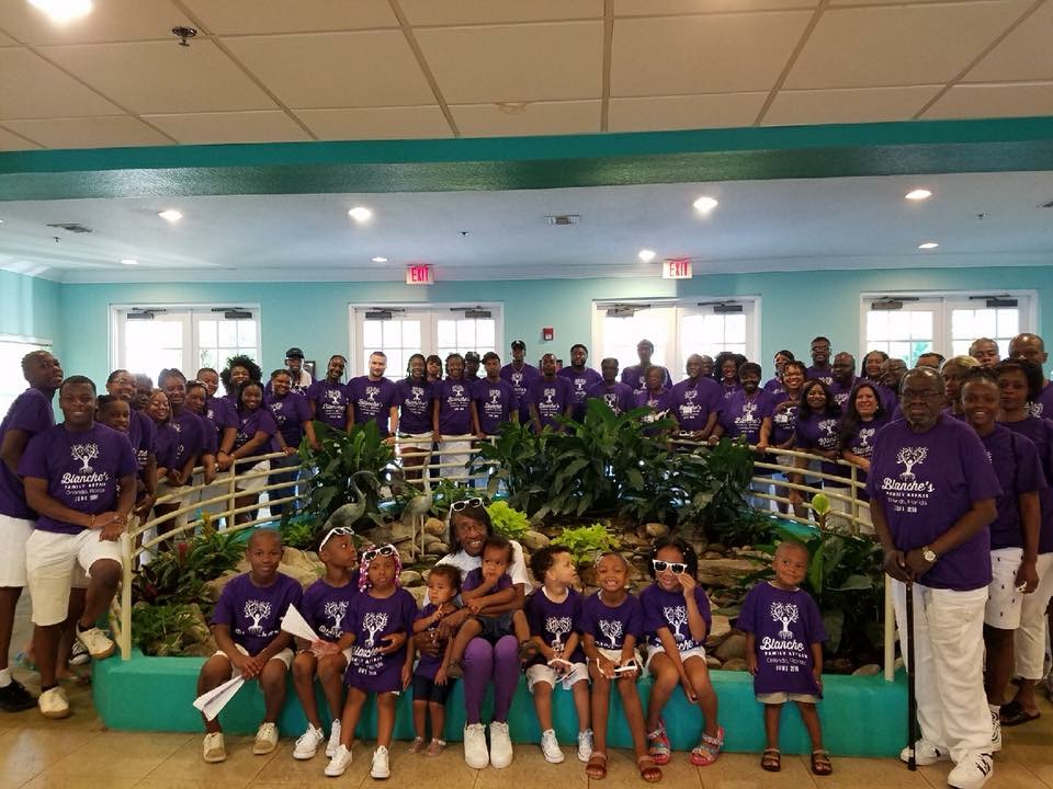 "My mom Blanche is 80 years old. She had a vision of her whole family getting together to reunite. She has adopted many of us but we are all family. She raised us all! The shirts were a hit and beautifully made. Blanche is in white and we are in Purple. All made by Custom Ink."
