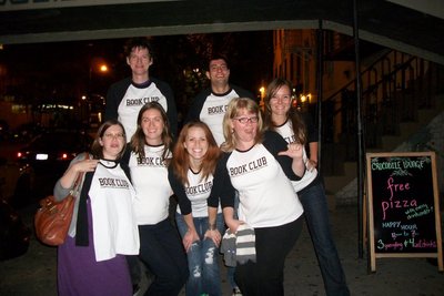 "Five years ago, I started a book club. This is us today! (Well, last week anyway.) This particular meeting of book club was very special because our contemporary folk hero, author Rob Sheffield, came to talk to us about his new book Talking to Girls about Duran Duran! It was also special because we got our CustomInk shirts which everyone (including Rob--he's the tall guy to the left) put on immediately (even though we were meeting at a bar). Customink was amazingly helpful and we all love our shirts so much we wish we could wear them every day. "