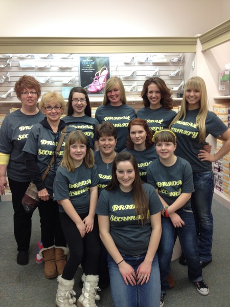 "We went wedding dress shopping and bridal party dress shopping! Everyone had their title on the back of their shirts! (i.e. made of honor)"