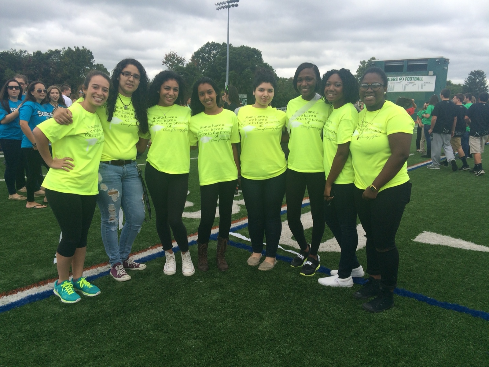 "These were our senior class of 2015 shirts for senior group photo day on October 2, 2014. Everyone had to make their own shirts with a group of friends and I designed this one which said, "Some have a story, but we have a legacy. You're in the presence of greatness. Class of twenty-fifteen" Our shirts came out amazing and BRIGHT! We were so happy with CustomInk's customer service and the outstanding help we got with even receiving a personal family and friends discount and being able to print out the same number "15" on the back without having to pay extra! Everyone's response to the shirt was positive and we felt flattered as we were complimented by the teachers and even the principal/assistant principals saying our shirts were the best out of our class of 400+ students! CustomInk made our senior group photo unforgettable."
