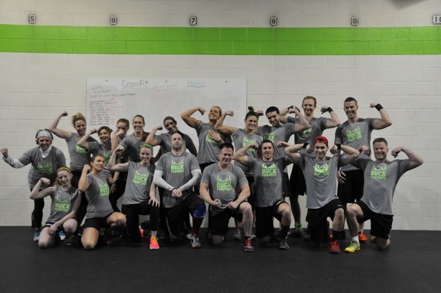 "This photo was taken at 6 hour lock in workout at Crossfit Honor (Pennsylvania) where many burpees took place in our awesome new Buck Furpee tri bled t-shirts. Thanks CustomInk for the awesome shirts!"