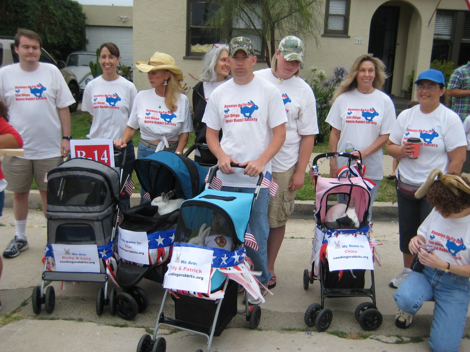 "Bunny lovers and their buns marched in the local 4th of July parade to help raise awareness about rabbits locally."