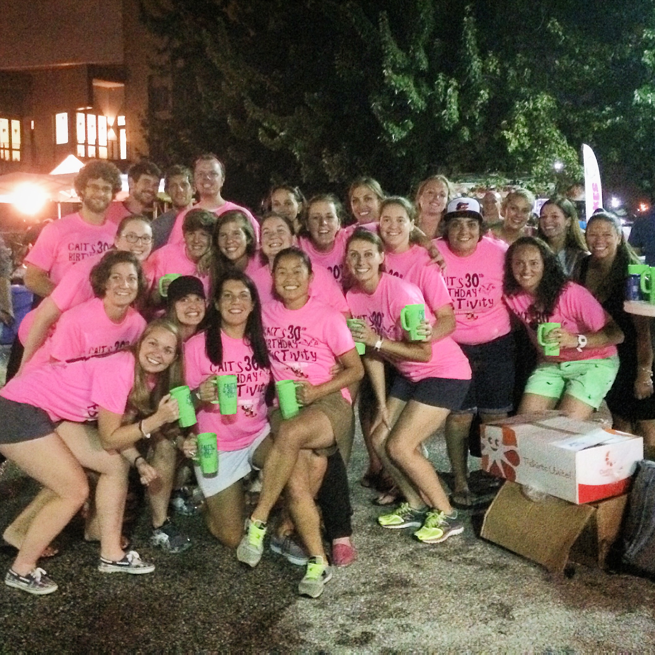 "My 30th birthday took place on august 22nd. My birthday wasn't just Friday night, but the entire weekend. I was glad to have everyone in these awesome neon pink shirts. It def. made finding each other throughout the weekend!! Wahoo to being 30. Also, my nickname is Fist. So happy FISTtivities! ;)"