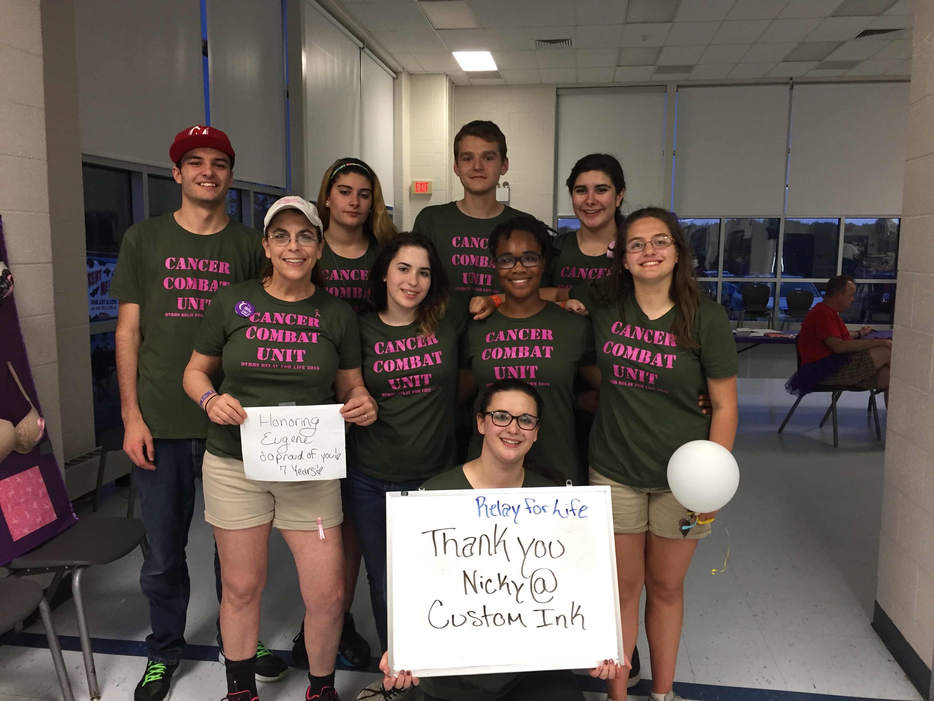 "This is my team Cancer Combat Unit at the DVRHS Relay For Life on May 21st. We loved our tee shirts and had a great time with CustomInk!"