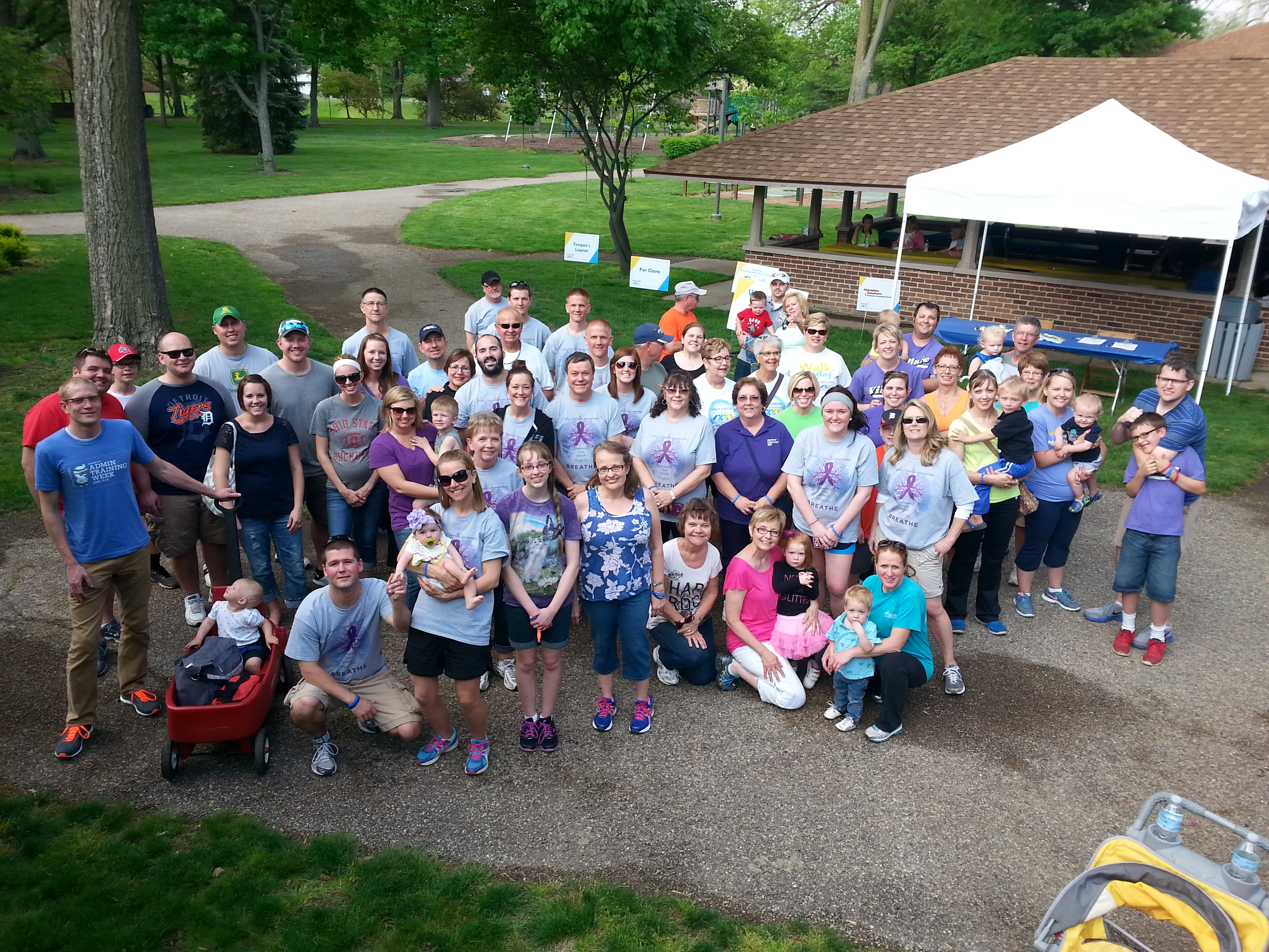 "When my daughter Clara was 12 days old she was diagnosed with Cystic Fibrosis (CF), a genetic disorder that affects the lungs and pancreas. For the past five months, my family and friends have been helping my husband Matt & I spread awareness and raise money to fund research for a cure for CF. On May 15, Findlay Ohio hosted their first Great Strides Walk. This was organized by the Cystic Fibrosis Foundation, and it is a 5K walk to raise money for CF. This is is a picture of all of our family and friends who came to support Clara and walk for a great cause. Some of the team members are seen wearing their "Clara's Crew" Custom Ink t-shirts. My husband and I are about to place another order for about 45 more shirts because so many people expressed interest in buying one. Thanks Custom Ink for helping us spread the word about Cystic Fibrosis as we fight for a cure for baby Clara and so many others with CF!"