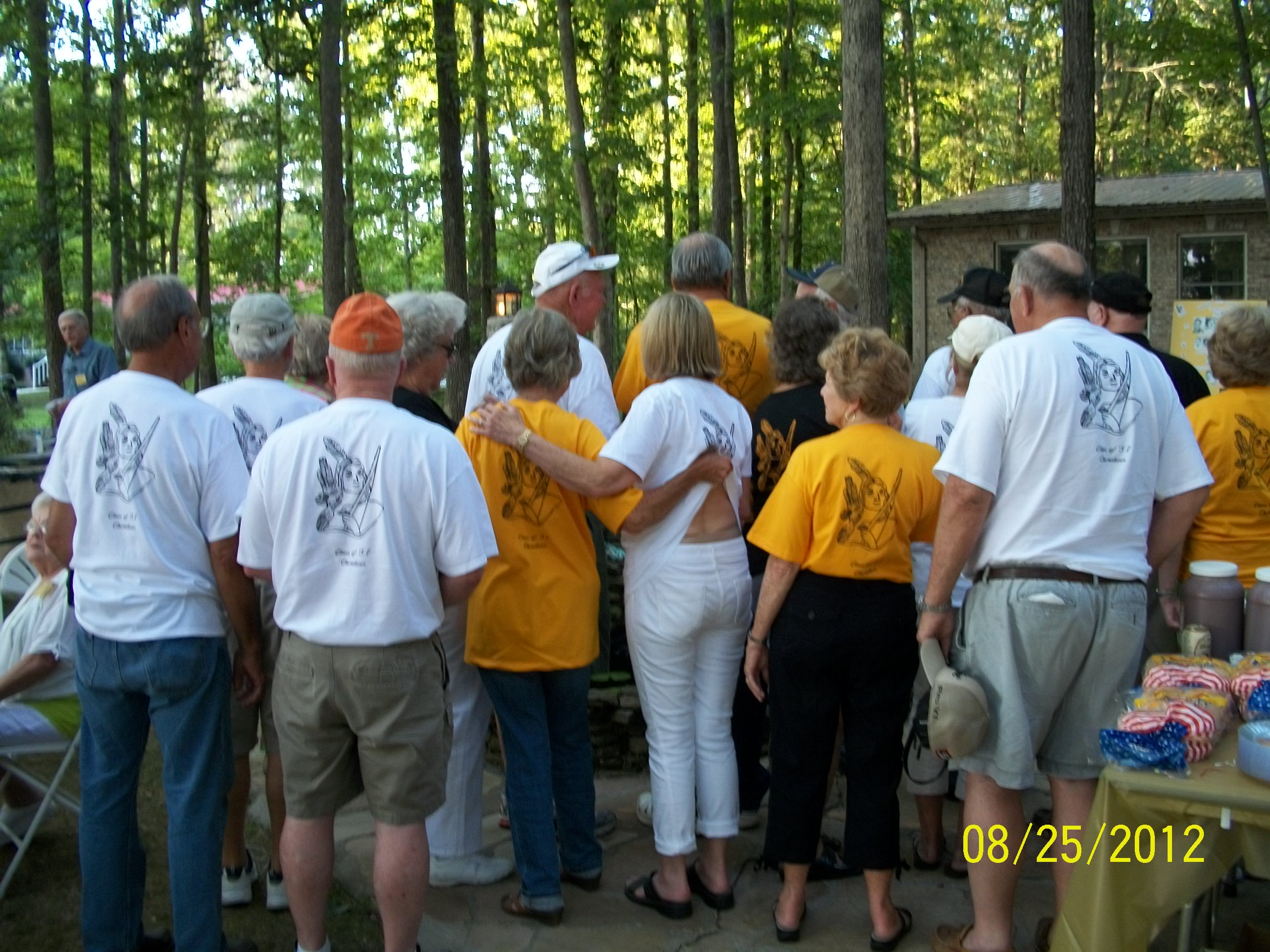 "The MCHS Class of '57 Celebrating their 55th reunion wearing the customink tee shirts with the pen and ink drawing of our mascot on the back."