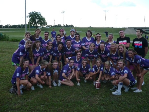 Similar Photos: seniors | powderpuff | powderpuff football | k-12 | football uniforms | augusta sleeve stripe jersey | purple white | coppell high school