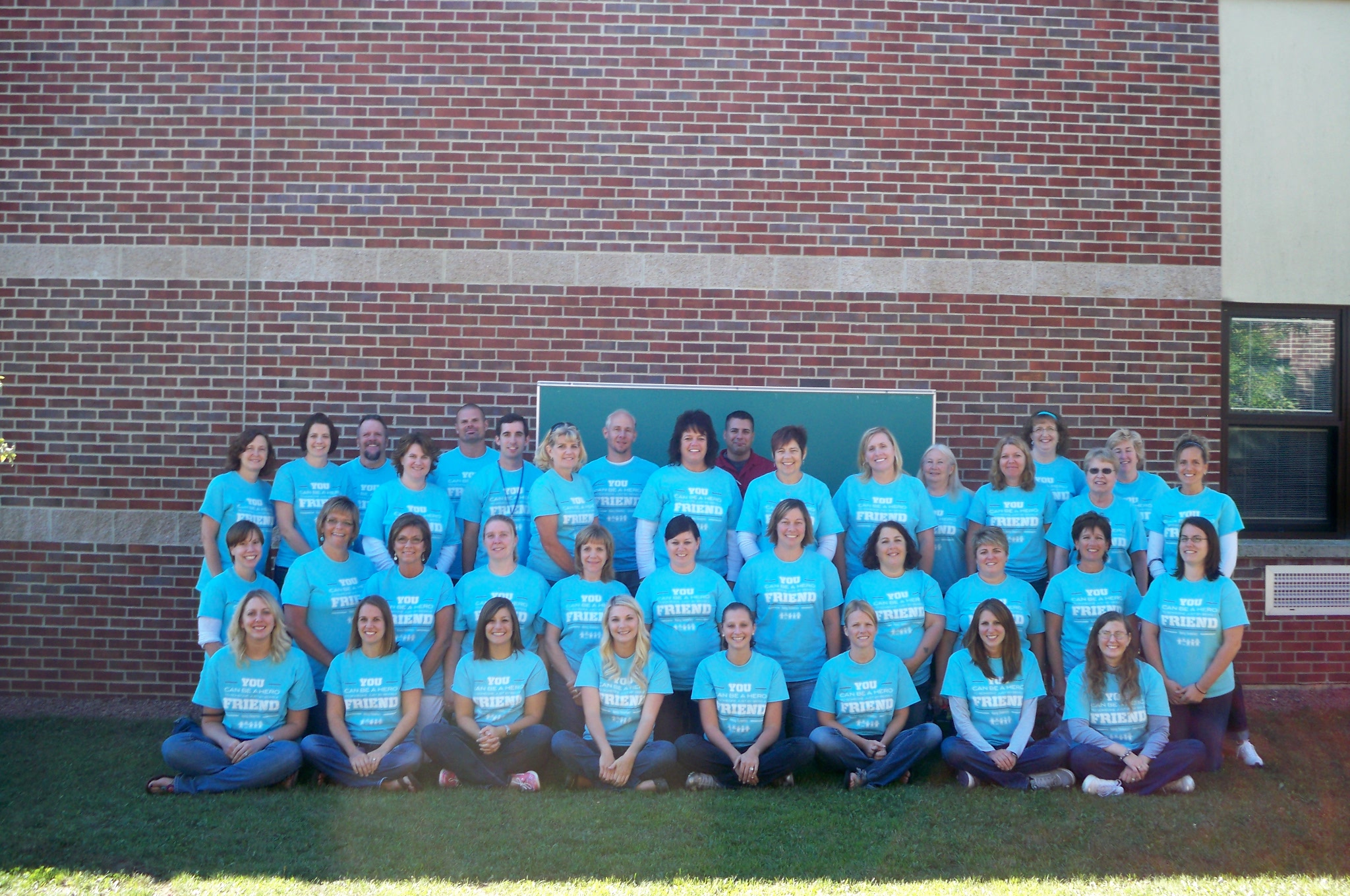"This is the first weeks of school photo where the staff and students are kicking off a bully free/character education program. "