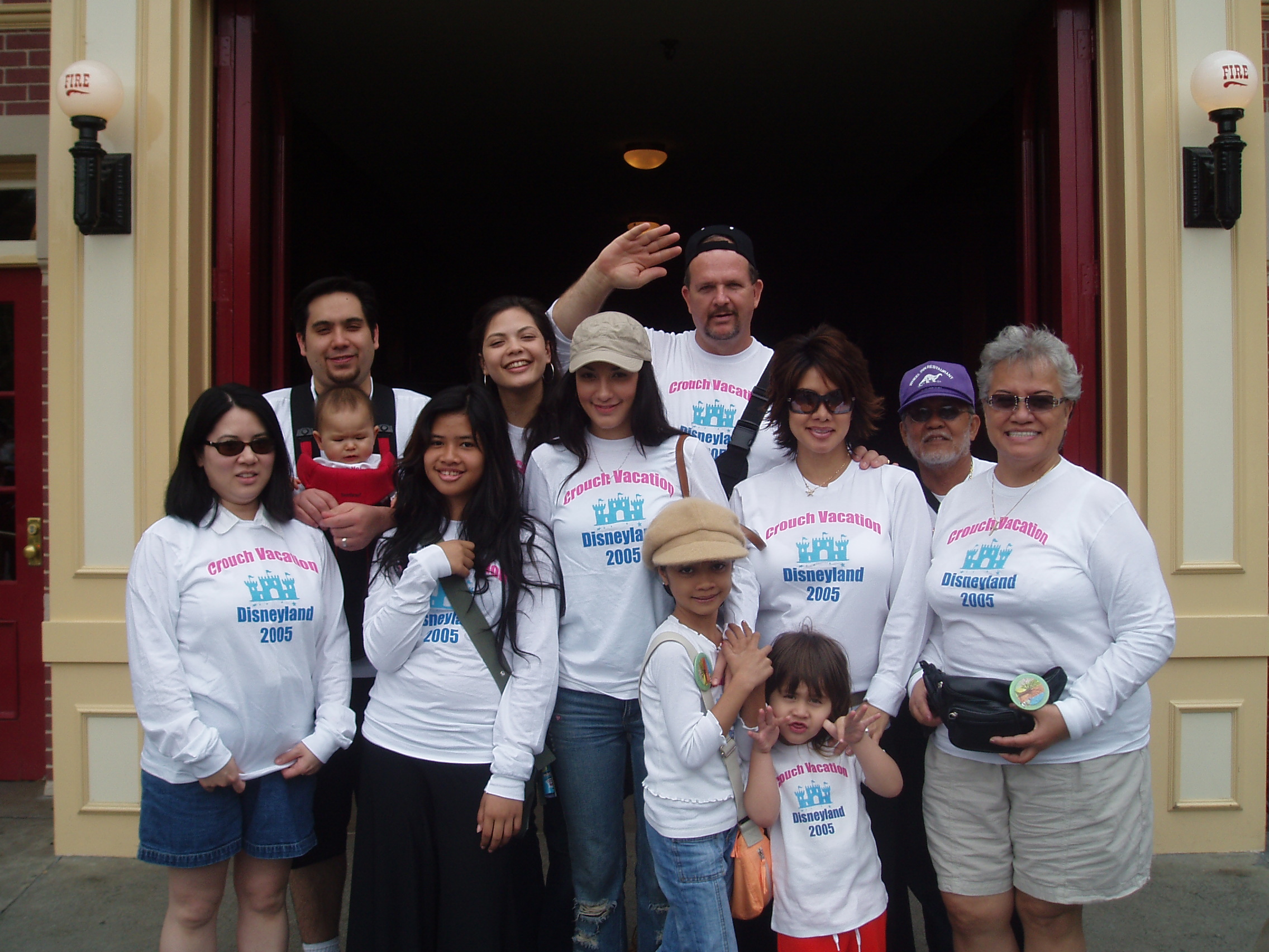 "This was our very first trip together as a family. My husband and I decided to take all our kids, daughter-in-law, granddaughter, and my parents to Disneyland. It was very special because it was with his 3 grown children, my 2 grown children (in which he adopted), and our young son (age 3)that we have together, (I am 6 months pregnant in the photo). I wanted everyone to have something to remember this event and so I had these special shirts made! Everyone loved it:-)"