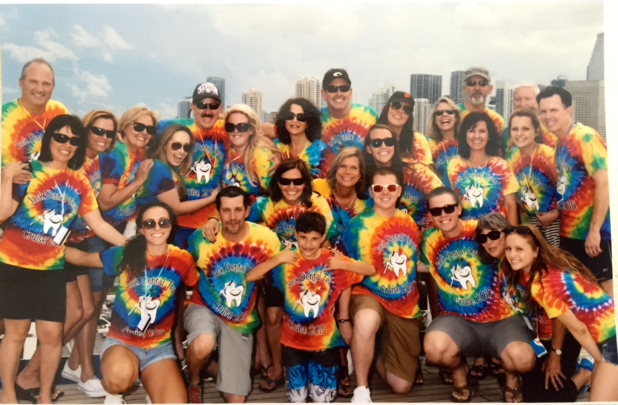"Dr. Jack took the staff and their families on a cruise. We wore our shirts as we boarded the ship an then wore them again when we did zip lining. They were a huge hit!"