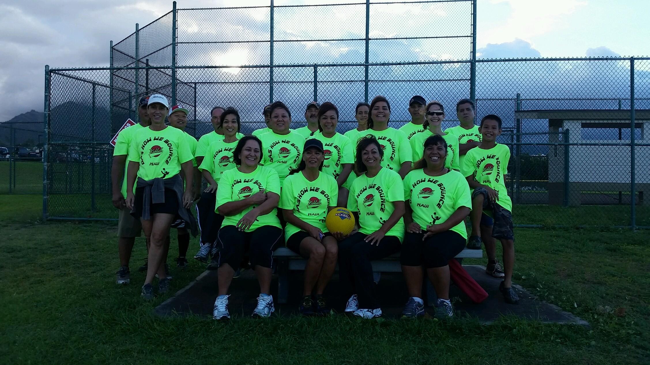 This is a photo of our kickball team called "Das How We Roll" at our first ever kickball game at Keopulani Park in beautiful Maui Hawaii. We are participating in the Wailuku Adult Co-Ed Kickball League.
